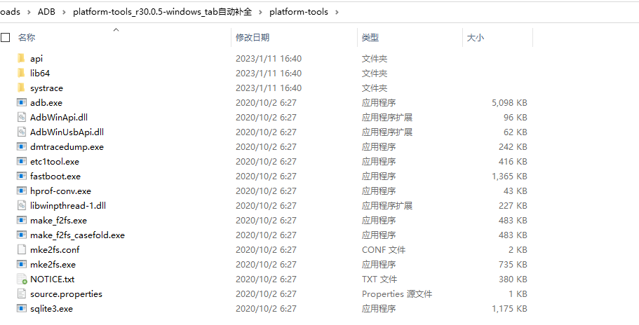 点击链接下载Windows版ADB工具 adb-tools 下载完成后解压,可以看到如下目录,