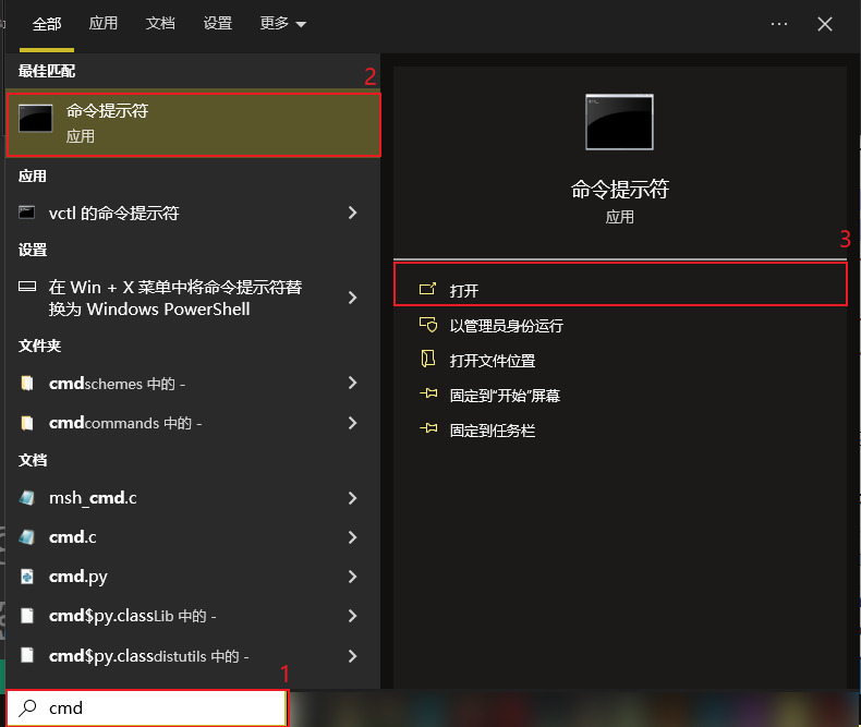 方式1:直接在Windows10/11搜索对话框中输入 cmd 在弹出的软件中点击 命令提示符