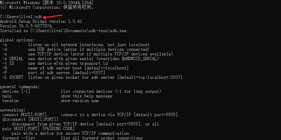 打开命令提示符,输出 adb命令可以直接看到我们的adb已经配置成功