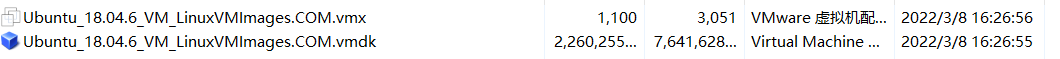 - 解压缩 虚拟机系统镜像压缩包,解压缩完成后,可以看到里面有如下两个文件,接下来,我们会使用 后缀名为 .vmx 这个 配置文件。