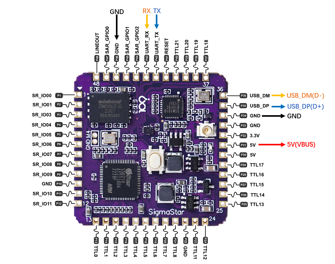 P36 USB_DM连接至 MicroUSB模块D-信号上P35 USB_DP连接至 MicroUSB模块D+信号上P34 GND连接至 MicroUSB模块GND信号上P31 5V连接至 MicroUSB模块 VBUS信号上