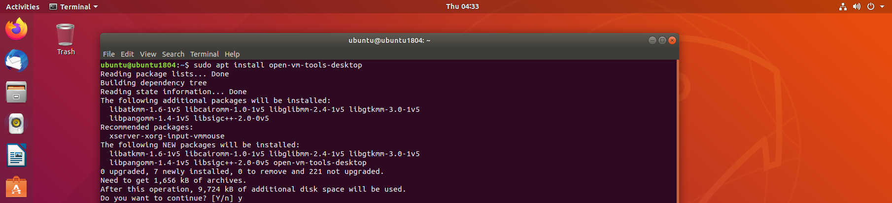 - 安装必要软件包, 鼠标点击进入 ubuntu界面内,键盘同时 按下 ctrl + alt + t 三个按键会快速唤起,终端界面,唤起成功后,在终端里面执行如下命令进行安装必要依赖包。